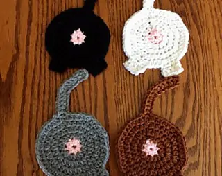 Want a simpler cat themed coaster? This cat face coaster pattern is easy to follow and easy to customize to match the color patterns of your cats!