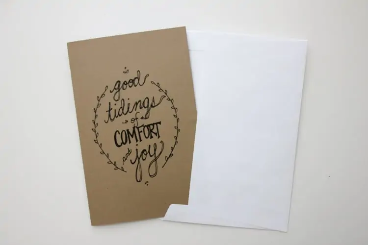 This card is both festive and fun! All you need is a small snow globe, some white paint, and a black Sharpie. Paint the inside of the snow globe white and let it dry. Then, write your Christmas message on the outside of the snow globe using the black Sharpie. Finally, put the snow globe back together and send it off to your friends and family!